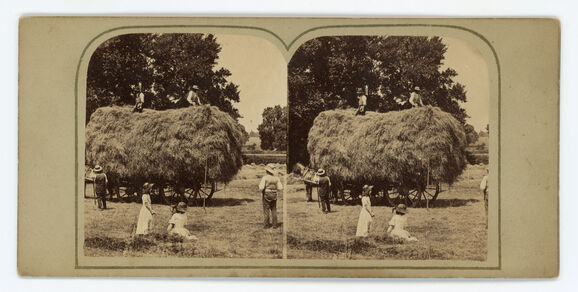 Hay Making, Unknown Photographer, 1860s, Albumen paper print on cardboard mount, Brian May Archive of Stereoscopy