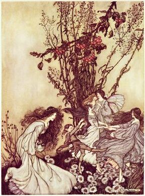 Arthur Rackham Dancing with the Fairies, from Peter Pan in Kensington Gardens by JM Barrie, 1906.