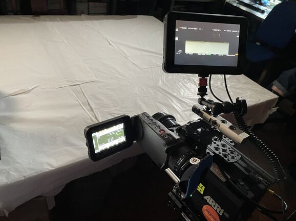 Finally, we ended the filming using a very interesting piece of equipment. This is a telescopic macro lens. It's used for filming really small things, really close-up. As you can see in the pictures above, the lens is only about an inch away from the object that is being filmed. However, as the lens is also wide-angle, it's able to pick up a surprisingly large area.