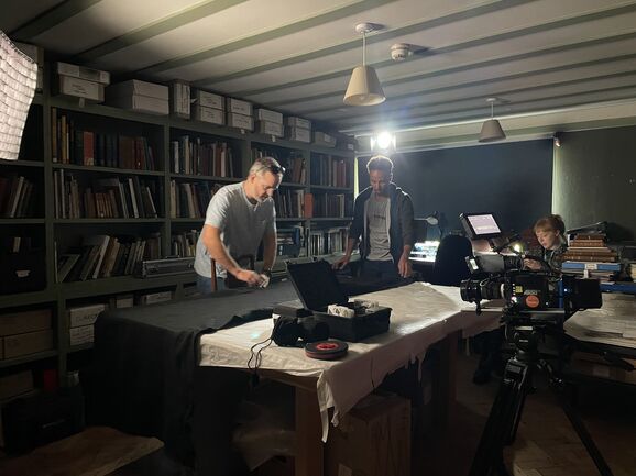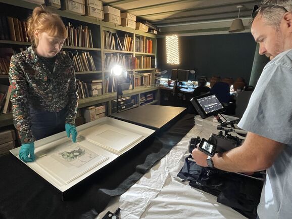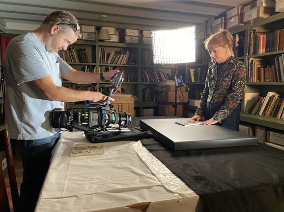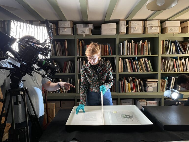 For the Flower Fairies trailer, we decided to use a mixture of animation and recorded material, so we called upon animator Sarah Hoyle and videographer Adam Hale for the job. Adam and his assistant came to Watts Gallery to film our Collections Officer Sarah Mercer in the archive room, and we documented the filming. Here's how it went...