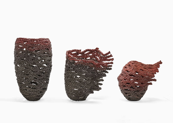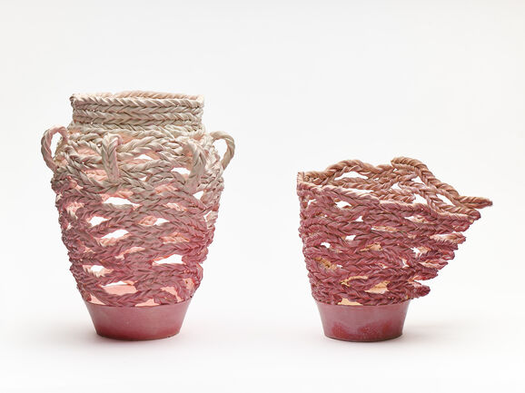 These ceramic pieces trace a journey - from a state of entrapment, to breaking free, and ultimately finding unity. Each work embodies a stage of transformation, reflecting resilience, strength, and the collective hope of those fighting for gender equality and freedom. The cut plaits serve as both a symbol and a memory of the women who protested fearlessly for their rights.