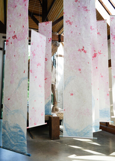 Hiroko Imada's site-specific installation Sakura saku ('Cherry blossoms are blossoming') is on display in the Sculpture Gallery until 6 October 2024