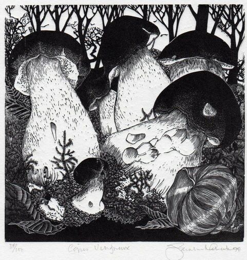Sarah first had work accepted for the Royal Academy Summer Exhibition in 1975, and showed there every year for the next 21 years. She contributed to Art in Action 1980-84 and 1987-88 and organised the ‘12 Wood Engravers’ tour of 1994-95. An active exhibitor for many years, Sarah held many solo shows across the UK and duo shows with artists including Colin See-Paynton and Anne Desmet.