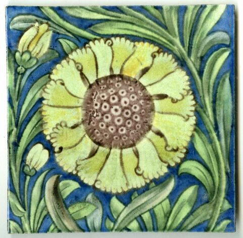 There's an interesting link here with the aesthetic movement, particularly with William De Morgan. Around this time, sunflowers weren’t very popular. They were these big, gaudy flowers – and they are yellow, which was quite an undesirable colour. It can be seen as the colour of cowardice and kind of yucky, but the Aesthetic Movement brought a new way of looking at things – a more ‘punk’ way of looking at things. They embraced yellow as a colour and so the sunflower became a popular motif amongst the artists of the movement.