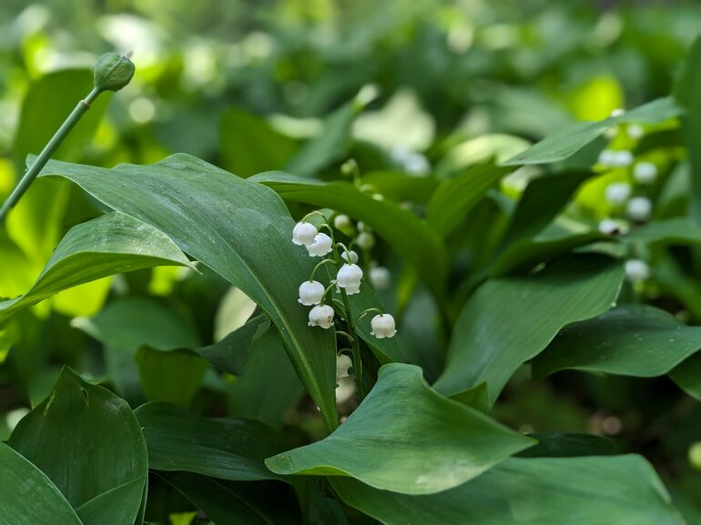 For number one, I've chosen lily of the valley. Lily of the valley is a flower that we have in abundance at Watts. It flowers in May – just about at the beginning of summer, so it kind of symbolises the end of winter and beginning of summer. It has a very precise meaning in the language of flowers, and it's the return of happiness – so you can see that link to the idea of winter being behind us and summer coming.