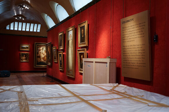 Before they hit the road, both paintings needed to be condition-checked. The frames also needed to be glazed and conserved so they were ready to travel. We called upon conservators Sally Marriott and Tom Proctor for the job. They examined each painting in detail. They looked for any cracks or losses in the paint. They also checked for frame instabilities. Issues like this are common in oil paintings of this age. They are usually old and stable, a testament to the decades a painting has lived through. It's important to keep a detailed record of a painting before it travels. It helps us identify any new issues.